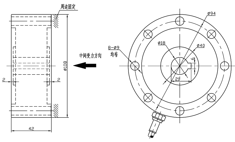 产品特点:KTK117键槽轮辐式测力传感器采用低截面设计的传感器,是为试验机专门设计的拉压两用传感器
