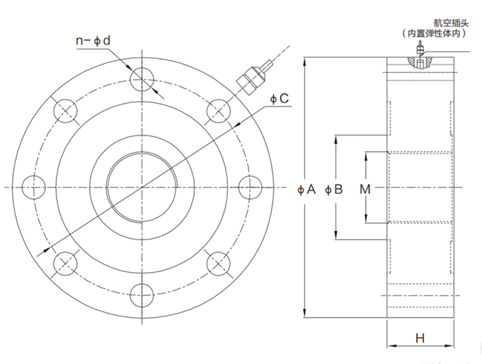 型号 | 量程(kN) | 量程(t) | M | A | B | C | H | n-фd |