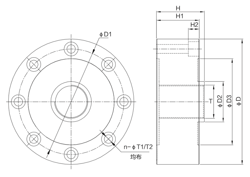 型号 | 量程(t) | D | D1 | D2 | D3 | H | H1 | T | T1 | T2 | H2 | n |
