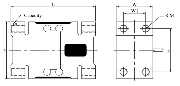 型号 | 量程(kN) | 量程(kg) | L | W | W1 | H | H1 | M | 推荐安装尺寸 |