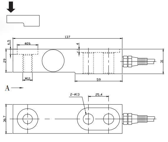 产品特点:KTK506悬臂梁式称重传感器安装高度低、综合精度高、自稳定结构、长期稳定性好,有A、B两种型式选用;优质合金钢结构,表面镀镍处理。