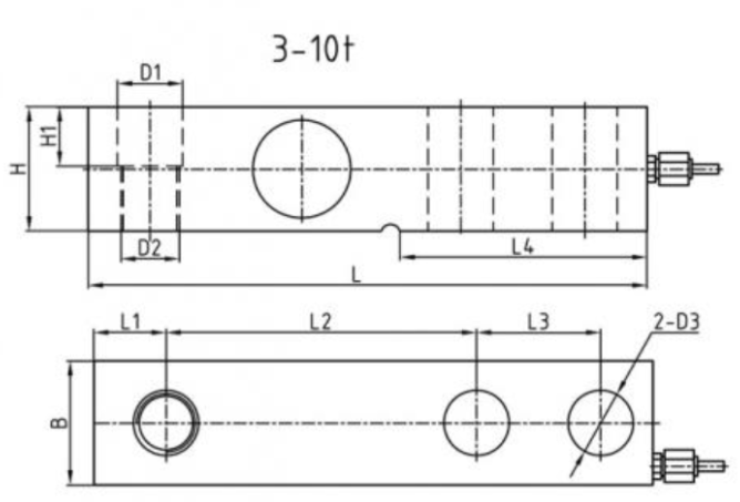 型号 | 量程(kN) | 量程(t) | L | L1 | L2 | L3 | L4 | B/H | H1 | D1 | D2 | D3 |